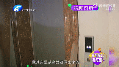 賈先生說(shuō):“坐電梯到一樓的時(shí)候它沒(méi)有停,直接掉到下面了,電梯壞了。當(dāng)時(shí)想打電話,但是手機(jī)沒(méi)信號(hào),沒(méi)辦法,就把螺絲刀拿出來(lái),把門翹了一道縫。然后我包里還有一個(gè)電鉆,就鉆了一個(gè)眼兒。我就把這個(gè)墻(捅了)了個(gè)窟窿?!?/span>